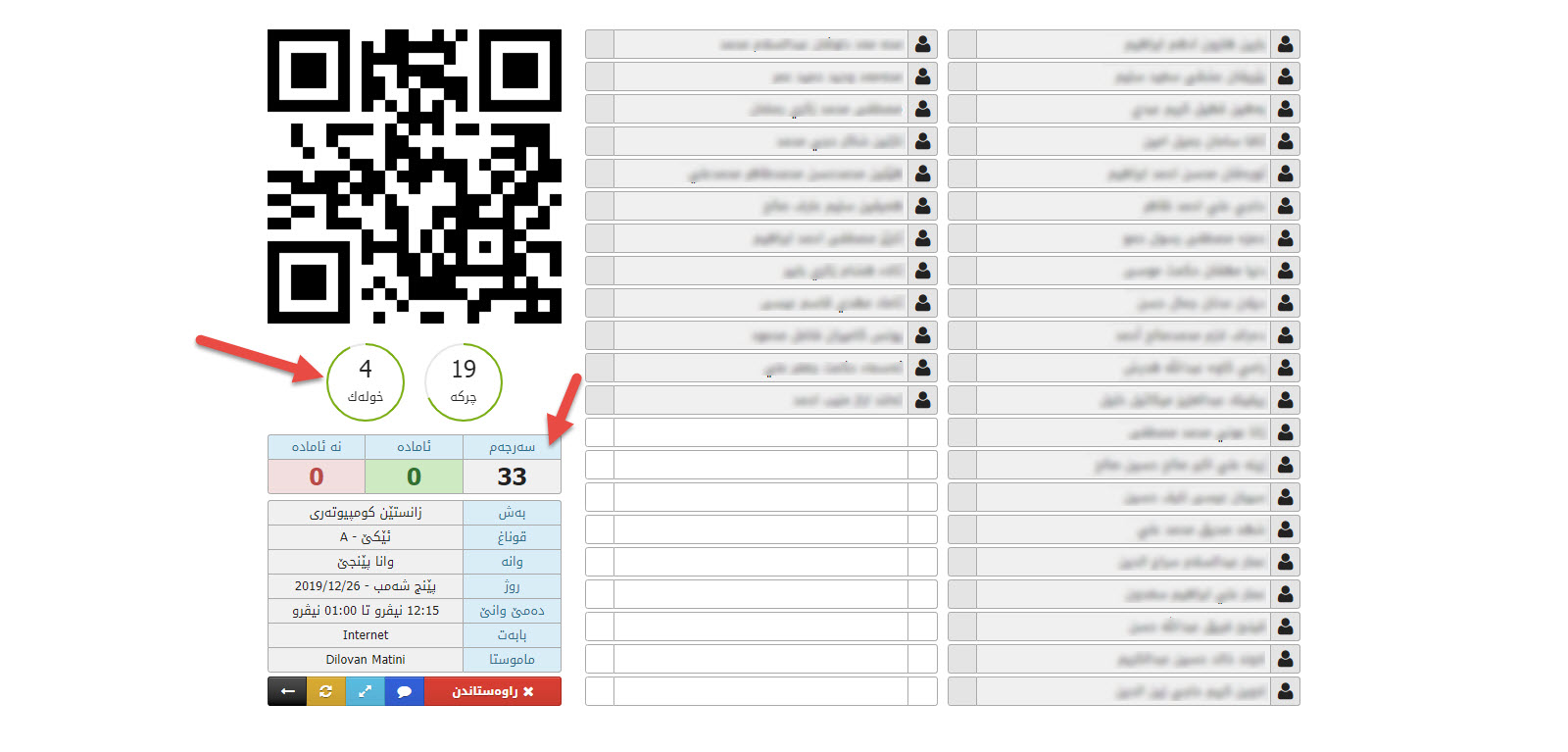 Students attendance system via QR code for Da Vinci Institute. Students can attend themselves by scanning the board QR code via their smartphones. Teachers also can make attendances for students in case student does not have a smartphone or the smartphone does not work.